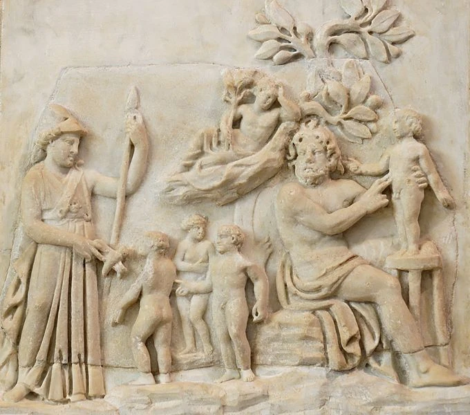 Zeus, der gemeinsam mit den Olympiern Kronos und die Titanen stürzte, wurde nun, gemeinsam mit den anderen Olympiern, auf das Menschenvolk aufmerksam. Diese versprachen den Menschen, sie zu beschützen, wenn diese sie verehren. Nun trafen sich beide Parteien, während Prometheus den Anwalt der Menschen darstellte und sich einer List bediente.
